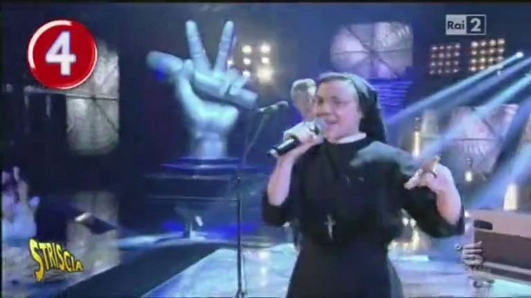 L'allora suora è stata più volte protagonista della rubrica di Striscia la notizia, grazie alle sue molteplici esibizioni a The Voice of Italy e alle sue apparizioni in tv. Il video.