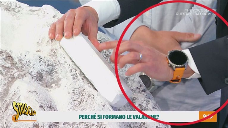Il conduttore Massimiliano Ossini parla del ritorno dell'ora legale circondato da una scenografia virtuale che è un tripudio di orologi e di lancette. Una scelta artistica e informativa? O un'ambientazione che calza a pennello con la "mostra" di orologi di un noto marchio sfoggiati subito dopo, in modo assai evidente, dal presentatore e dal suo ospite?