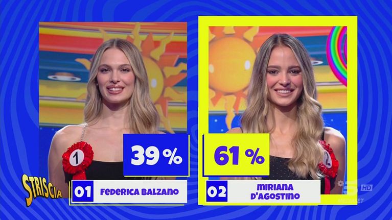 Mercoledì 22 gennaio 2025 il pubblico ha scelto Miriana D'Agostino che ha ottenuto il 61 % delle preferenze. All'altra aspirante Velina di questa sera, Federica Balzano è andato il 39% dei voti.