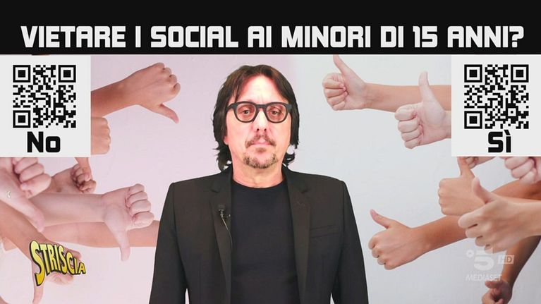 In Francia è stata fatta una proposta di legge per proibire ai minori di 15 anni di iscriversi ai social network. È giusto, è sbagliato? Ma non è troppo facile aggirare questa norma? La questione è interessante e complicata, e per questo Striscia la notizia chiede ai suoi spettatori di esprimere la propria opinione. Basta inquadrare il QR Code sullo schermo.