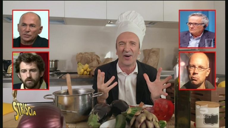 Roberto Benigni manda un videomessaggio a Gerry Scotti e Michelle Hunziker dalla sua cucina, dove si diletta in una ricetta da premio Oscar, la zuppa di verdura alla Nanni (Moretti)