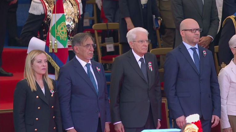 Giorgia Meloni al fianco del presidente Mattarella partecipa per la prima volta da premier alla parata dei Fori Imperiali