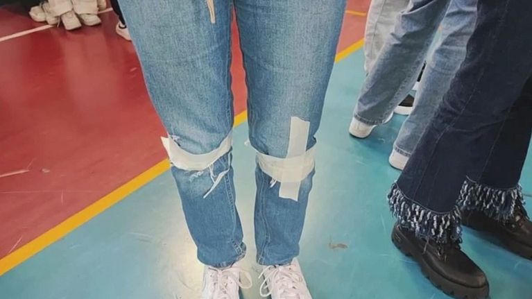 A scuola scotch sui jeans strappati