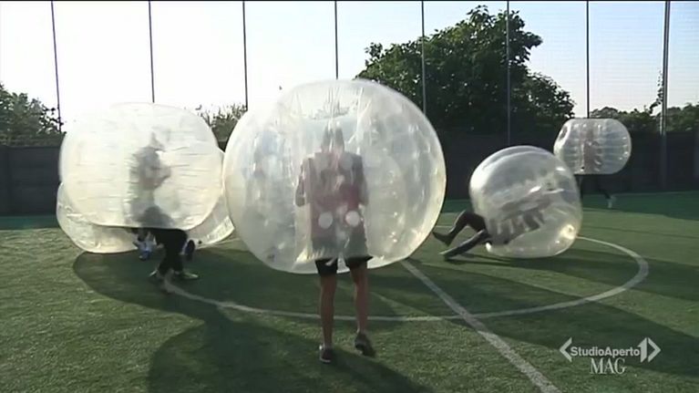 Una variante del calcetto in enormi bolle gonfiabili