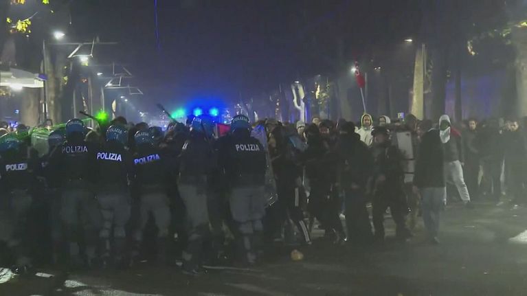 Tensione e scontri a Torino tra i manifestanti del centro sociale e la polizia dopo lo sgombero e le perquisizioni di ieri.
