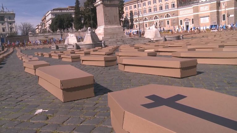 Mille bare in Piazza del Popolo a Roma contro le stragi sul lavoro. I sindacati chiedono più impegno sulla sicurezza.