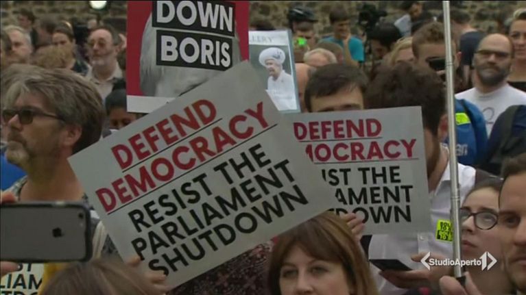 Crolla la sterlina e cresce la protesta dopo la decisione di Boris Johnson di sospendere il Parlamento per evitare intoppi alla Brexit.