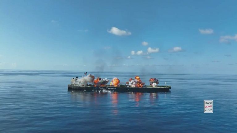 Le immagini della petroliera greca attaccata dagli houthi e bloccata nel Mar Rosso