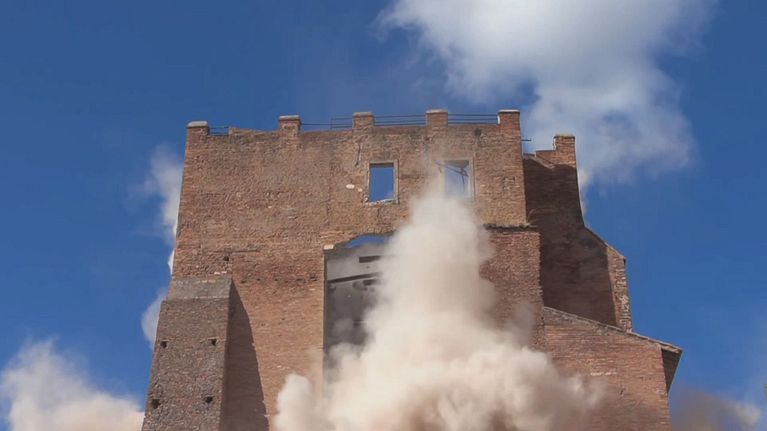 Crollo a Roma della Torre dei Conti, un edificio medievale vicino ai Fori Imperiali