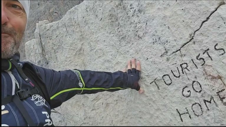 Dolomiti, lo sfregio sulla roccia