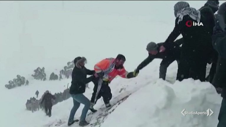 La slavina si è abbattuta su un gruppo di soccorritori e volontari impegnati nelle operazioni di ricerca di alcuni dispersi.