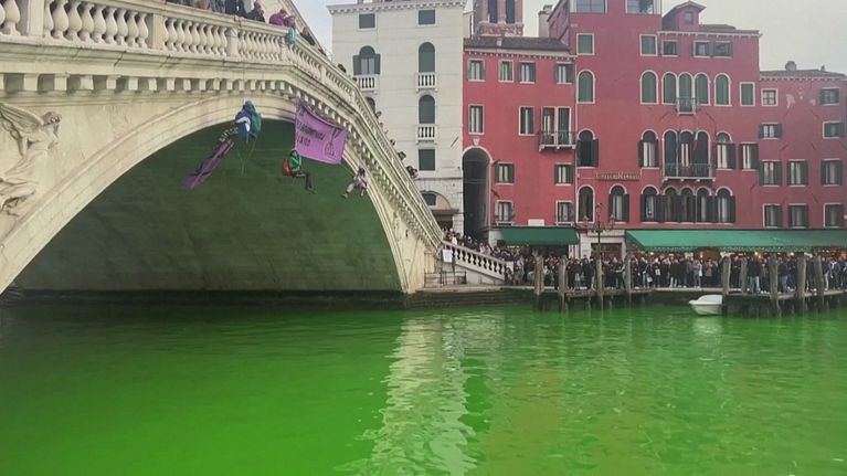 Versato del colorante verde a Venezia, Milano e Torino.