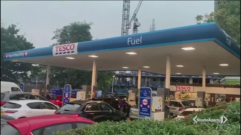 Lunghe code ai distributori di benzina in tutta la Gran Bretagna, senza autotrasportatori i rifornimenti delle merci scarseggiano