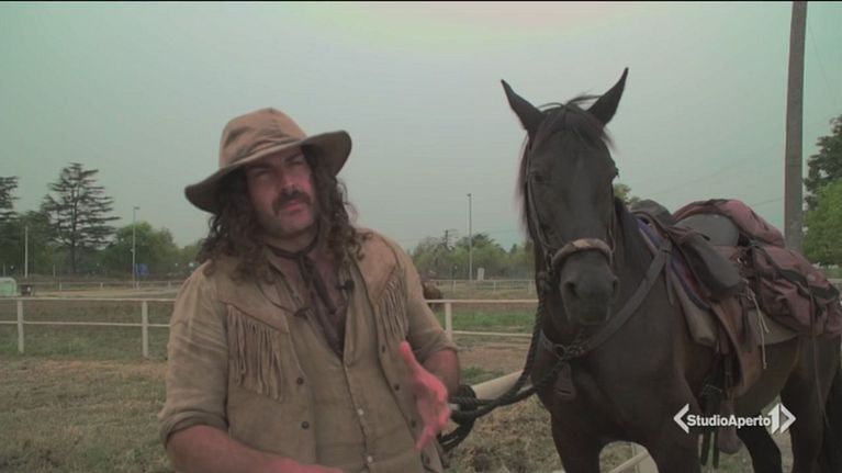Un viaggiatore e il suo cavallo: insieme hanno già percorso centinaia di chilometri, ma l'obbiettivo è fare il giro d'Italia.
