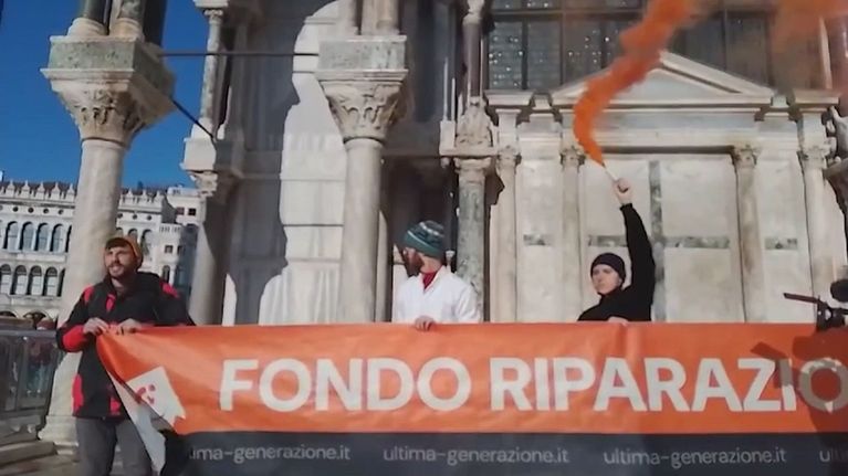 Fango e cacao in polvere contro la Basilica di San Marco, l'ennesimo blitz degli attivisti di ultima generazione.