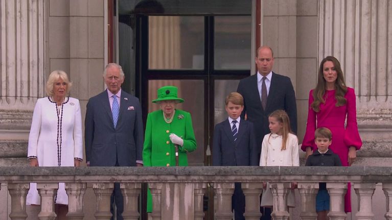 La Regina si affaccia dal balcone di Buckingham Palace e ringrazia i suoi sudditi.