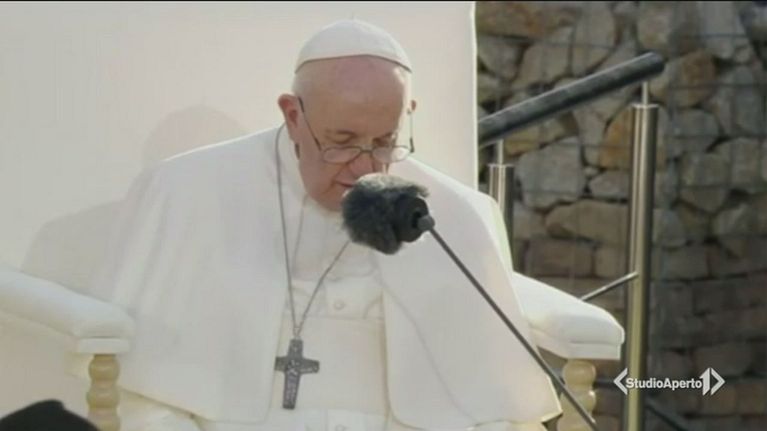 Papa Francesco a Bratislava incontra la comunità ebraica al memoriale della Shoah.
