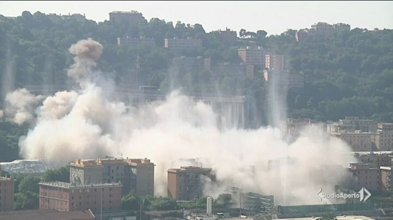 Demolito quel che restava del ponte Morandi a 11 mesi dalla tragedia.