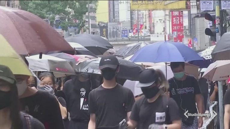 I manifestanti sono tornati nelle strade di Hong Kong con i volti coperti sfidando il divieto.