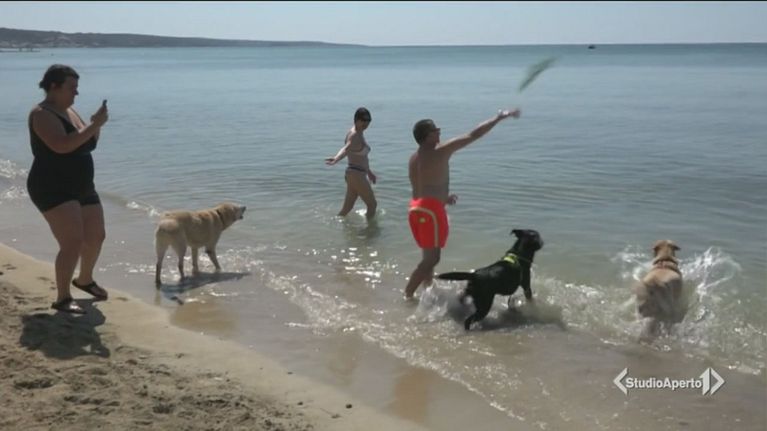 Cani inseparabili dai loro padroni, anche sulla spiaggia in Salento.