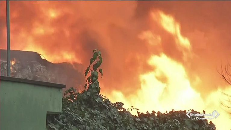 Un vasto incendio è scoppiato in una cartiera non distante dagli studi di Mediaset a Cologno Monzese.