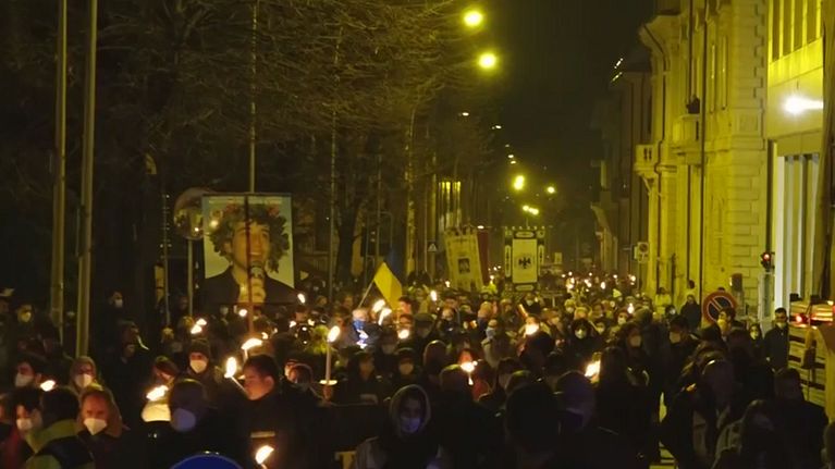 A 13 anni dal terremoto migliaia di fiaccole hanno illuminato il centro della città.