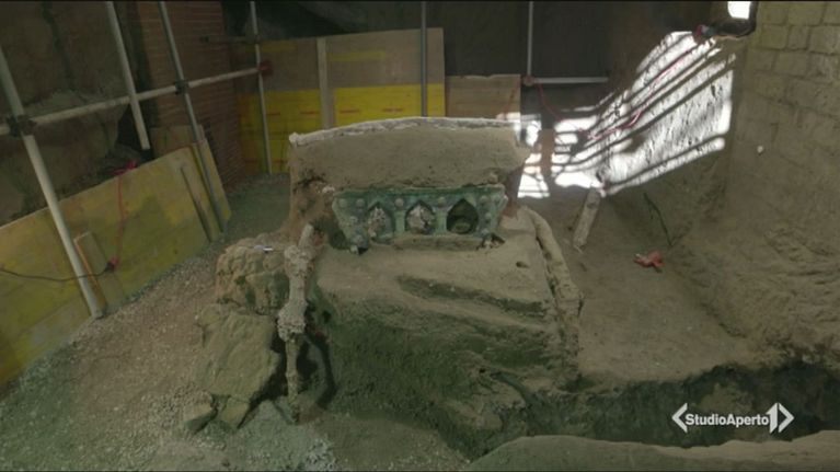 Riportato alla luce un carro cerimoniale elegantemente decorato in bronzo che ancora riporta l'impronta dei cuscini
