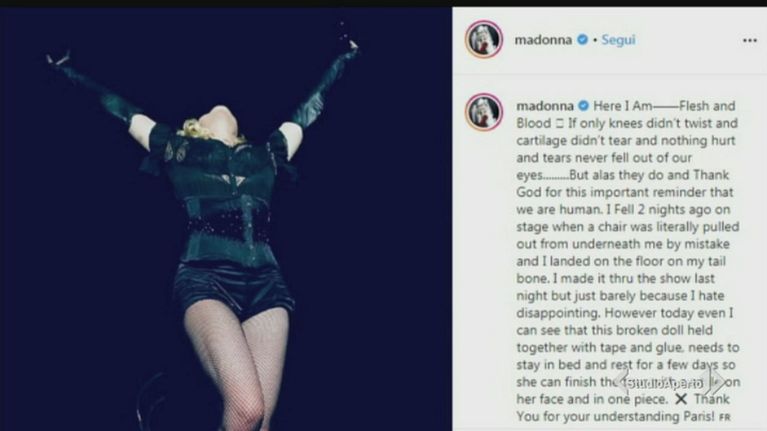 Madonna ancora una volta costretta a fermarsi per una caduta sul palco a Parigi.