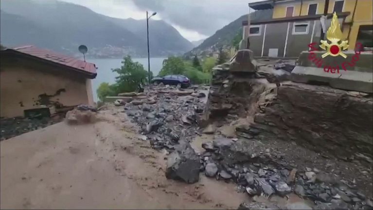Maltempo, ponte crollato: si cerca un automobilista disperso.