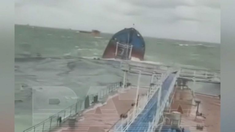Grave disastro ambientale a causa di una tempesta davanti alle coste della Crimea.