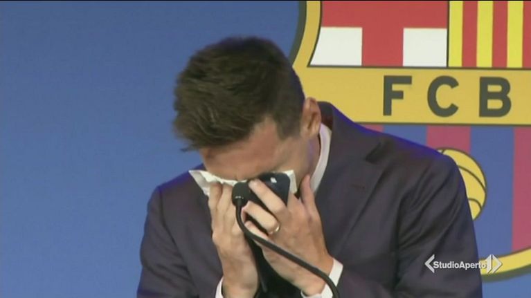 Leo Messi saluta il Barcellona tra le lacrime in conferenza stampa.
