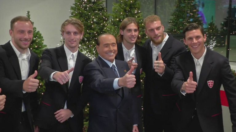 Le due squadre in campo a San Siro ricordano Silvio Berlusconi.