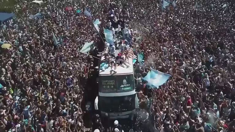 Una marea di 5 milioni di tifosi paralizza la capitale. Messi e compagni prelevati da un elicottero.