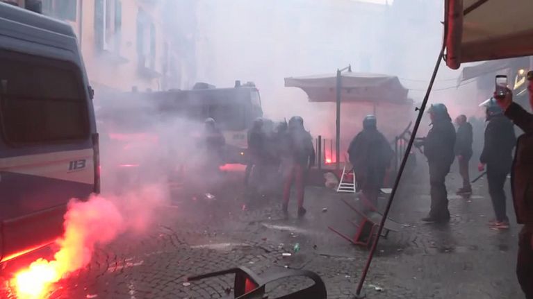 Scene di guerriglia a Napoli per la partita di Champions. Nonostante i divieti sono arrivati almeno 600 tifosi dell'Eintracht