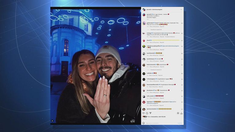 L'annuncio con una foto sui social: Pecco Bagnaia e la fisanzata Domizia si sposano.