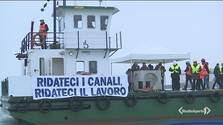 Protesta dei lavoratori al porto di Venezia