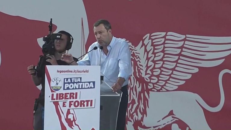 Salvini chiude il raduno di Pontida e ribadisce il no della Lega al riarmo italiano ed europeo.