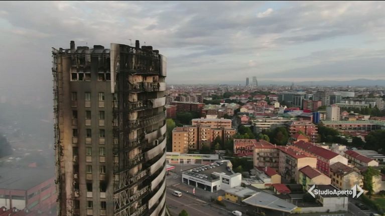 Non rimane più nulla del palazzo di 15 piani, divorato dalle fiamme a Milano. Ora è rischio crolli.