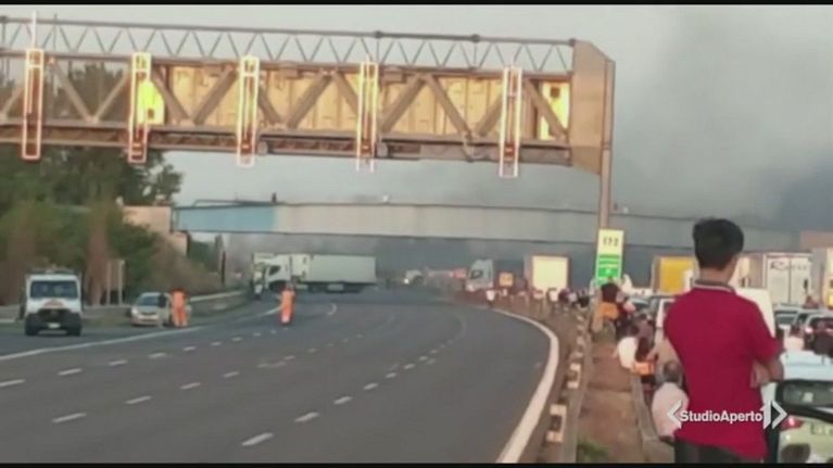 Scene da guerra sulla A1 per l'assalto ad un portavalori. Il colpo è andato a vuoto, caccia ai criminali in fuga.