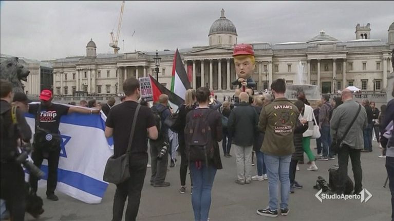 Cena di gala in bianco a Buckingham Palace per Trump e la first lady Melania. A Londra è il giorno della grande protesta in piazza