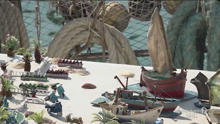 Luciano, pescatore artista, costruisce modellini.
