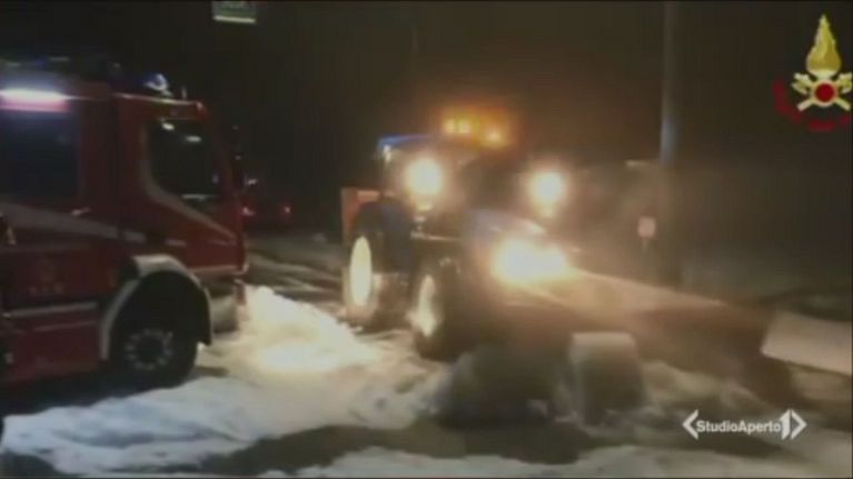 Un'eccezionale grandinata a Varese costringe gli spazzaneve ad entrare in azione.