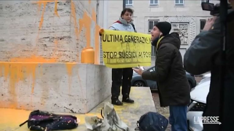 L'imbrattamento con vernice arancione da parte di eco-attivisti.