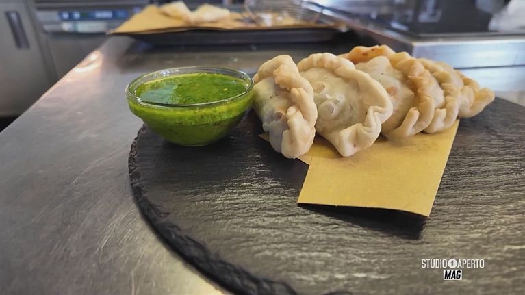 Empanadas ripiene di polpo ubriaco con salsa chimichurri alla ligure