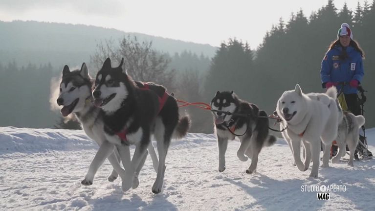 Le slitte, trainate dai cani, che si sfidano sulla neve nei percorsi di campagna e in pianura.