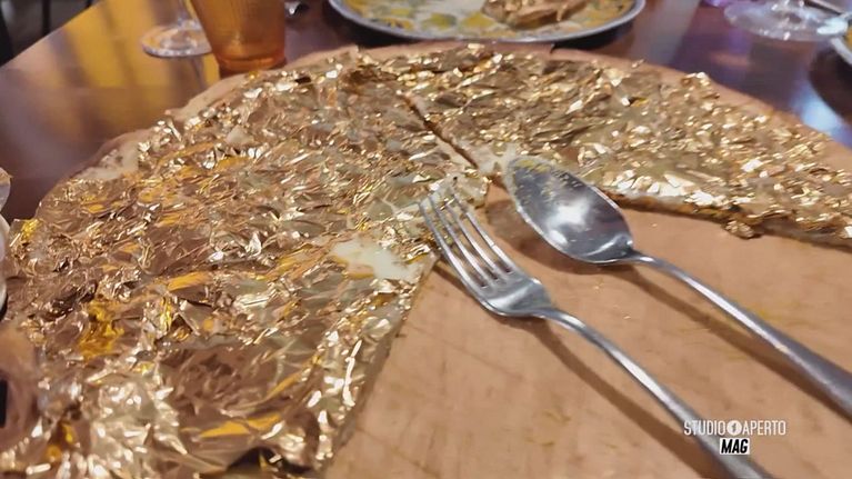 Un piatto gustoso ornato da fogli d'oro da 17 carati
