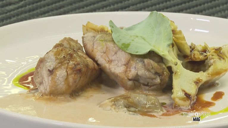 Un giardino d'inverno in un locale di Saluzzo e la cucina dello Chef Carmelo Alicata.