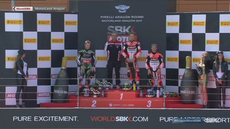 Il podio di gara-2 ad Aragon: Davies, Rea e Melandri