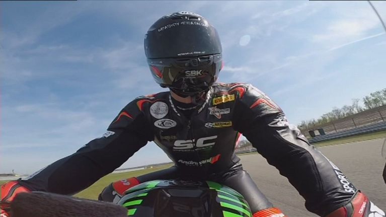 Max in pista con la Kawasaki del team Puccetti