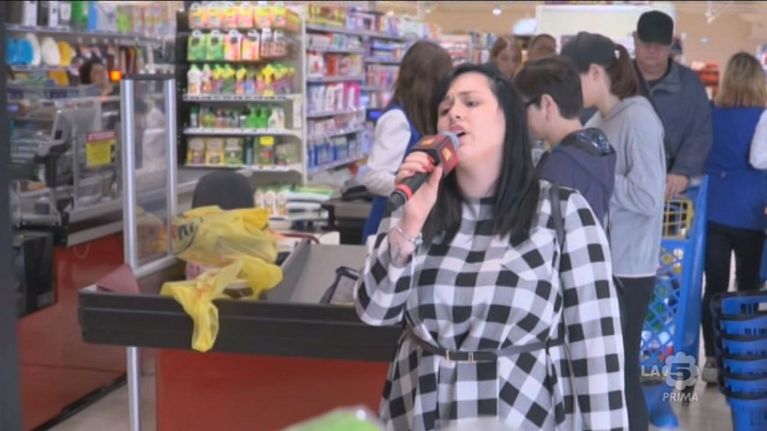 Una nuova cliente del supermercato si esibisce in "Il mare d'inverno".